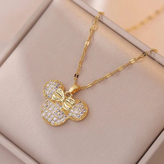 Disney Cartoon Bowknot Minnie Mouse Head Pendant Necklace for Women Girls Stainless Steel Chain Birthday Gifts for Friends