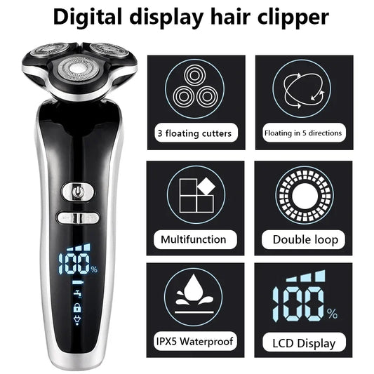 Electric Shaver 7D Floating Cutter Head Base Charging Portable Men Beard Trimmer Clipper Skull Shaver Waterproof Shaving