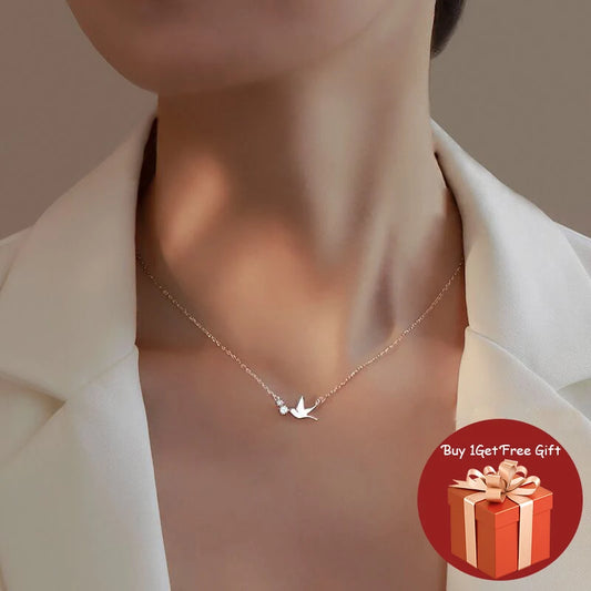 Korean Silver Color Cute White Dove Necklace for Women Fashion Simple Temperament Zircon Clavicle Chain Necklace Jewlery