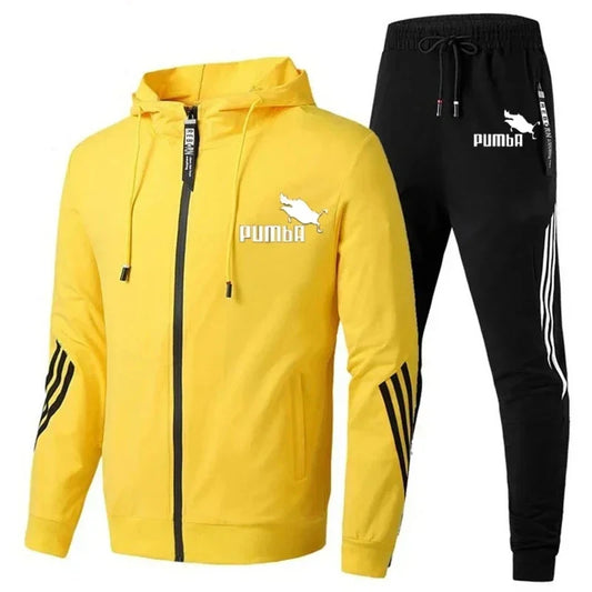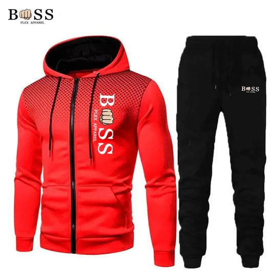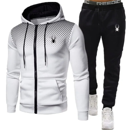 Men's Tracksuit Hooded Zipper Jacket + Sweatpd Winter Male