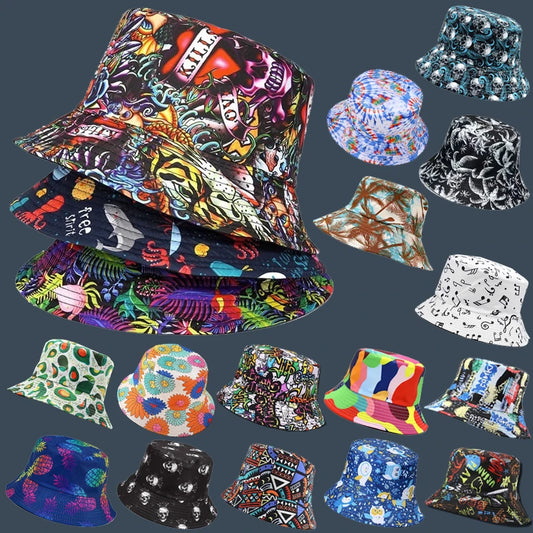 Panama Bucket Hats Animal Letter Print Fisherman Hat Summer Sun Hats For Women Men Reversible Fishing Cap