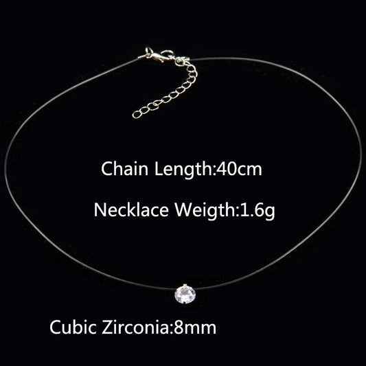 Poputton Female Transparent Fishing Line Necklace Silver Plated Invisible Chain Women Rhinestone Choker Necklace Collier Femme