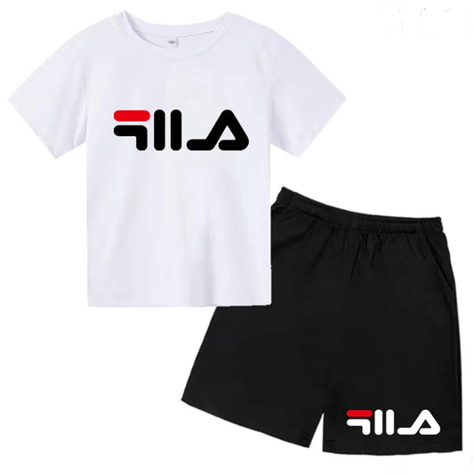 Summer Round Neck T-shirt for Boys Girl+shorts Set Children's Printed Cotton Breathable Leisure Brand Short Sleeve Clothing