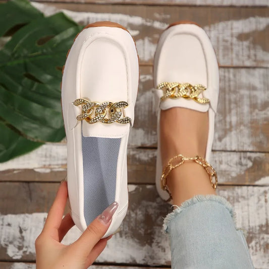 2024 Ladies Spring New Metal Chain Desf Walking Flat Shoes