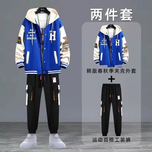 Spring Autumn Men Outfit Set Korean Fashisuit 2 Piece Set