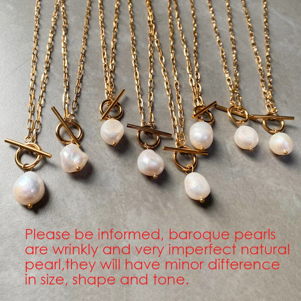 eManco Freshwater Pearl Toggle Necklace For Women Paperclip Chain Necklace Stainless Steel Long Box Square Chain Long Choker