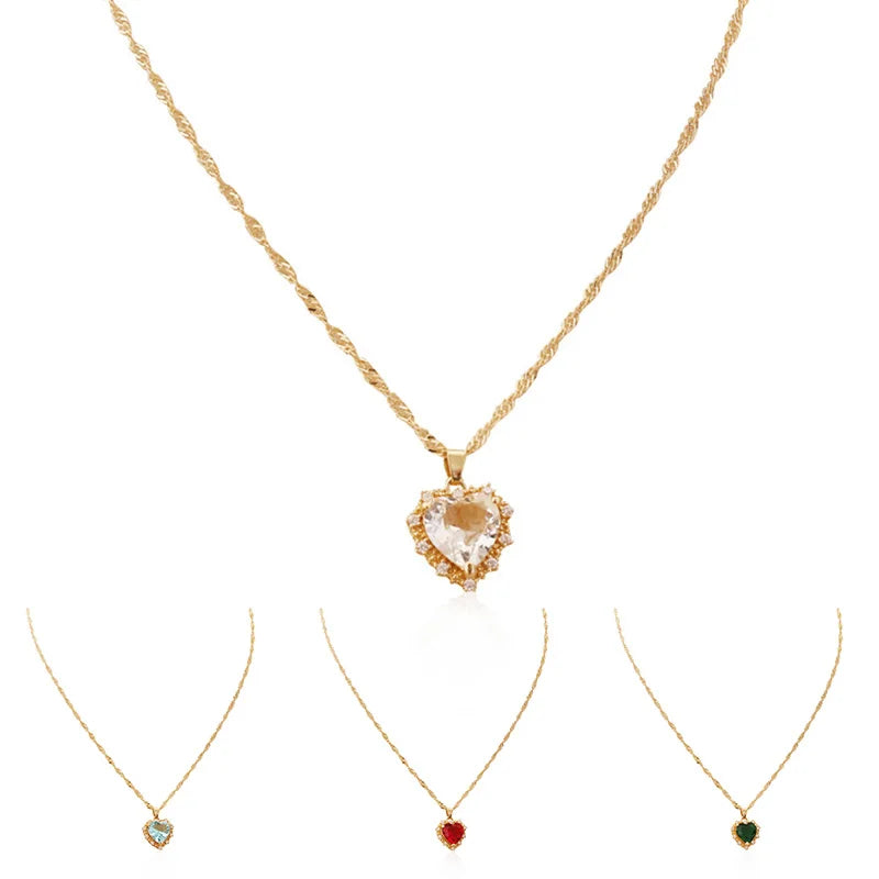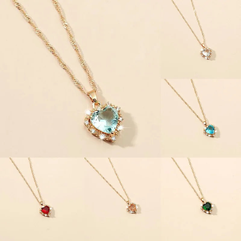 Fashion Heart Necklace For Women Sweet Zircon Love Heart Pendant Necklace Female Elegant Charm Rhinestone Clavicle Chain Choker