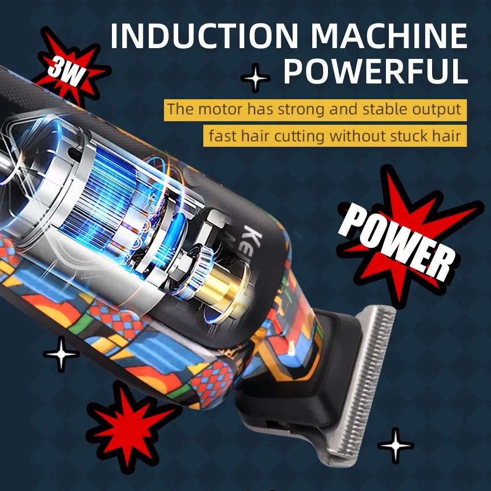 Kemei-5090 Digital Display Professional Barber Pusher For Men Hair Clipper Reciprocating Random Graffiti Pattern Electric