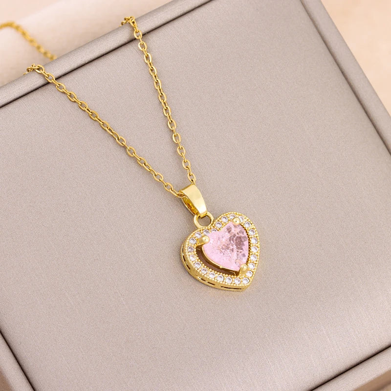 New In Trendy Zircon Crystal Pendant Stainless Steel Necklace