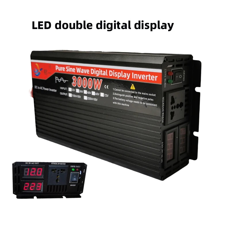 Pure Sine Wave Power Inverter DC 12V 24V 48V 60V 72V To AC 110V 220V Voltage 50Hz 60Hz 3000W Connector Car Inverter