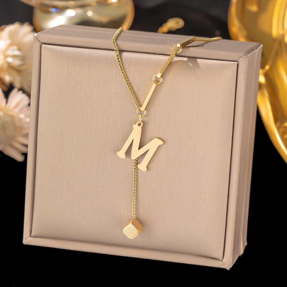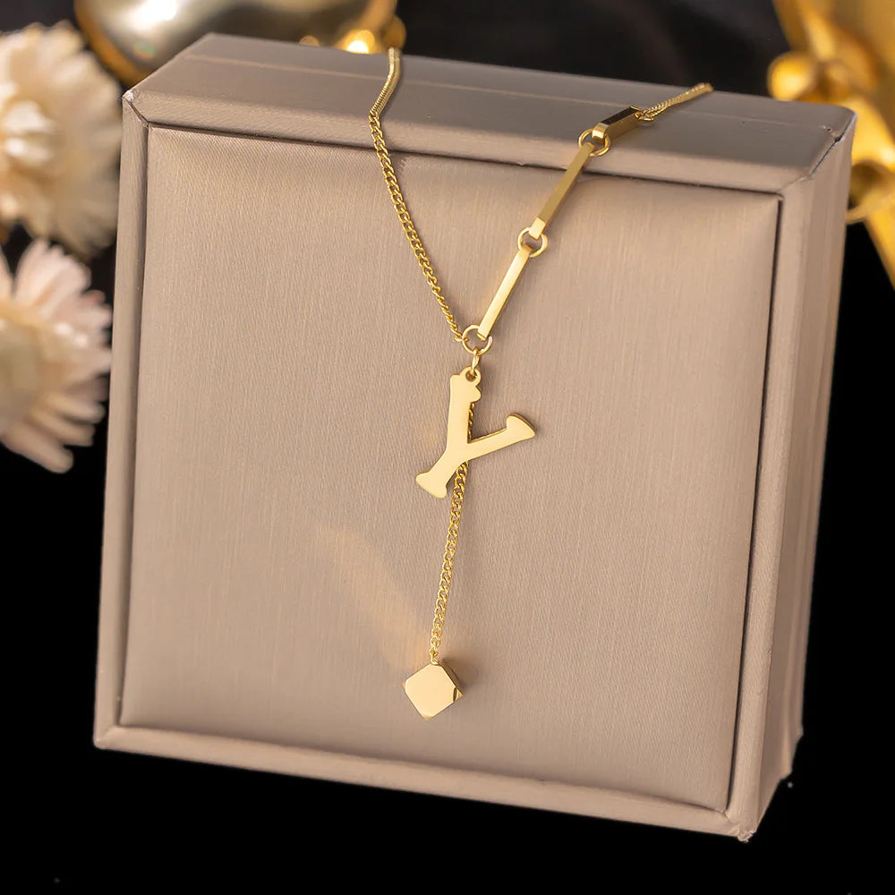 Stainless Steel Initial Letter Chain Necklace Jewelry Gift