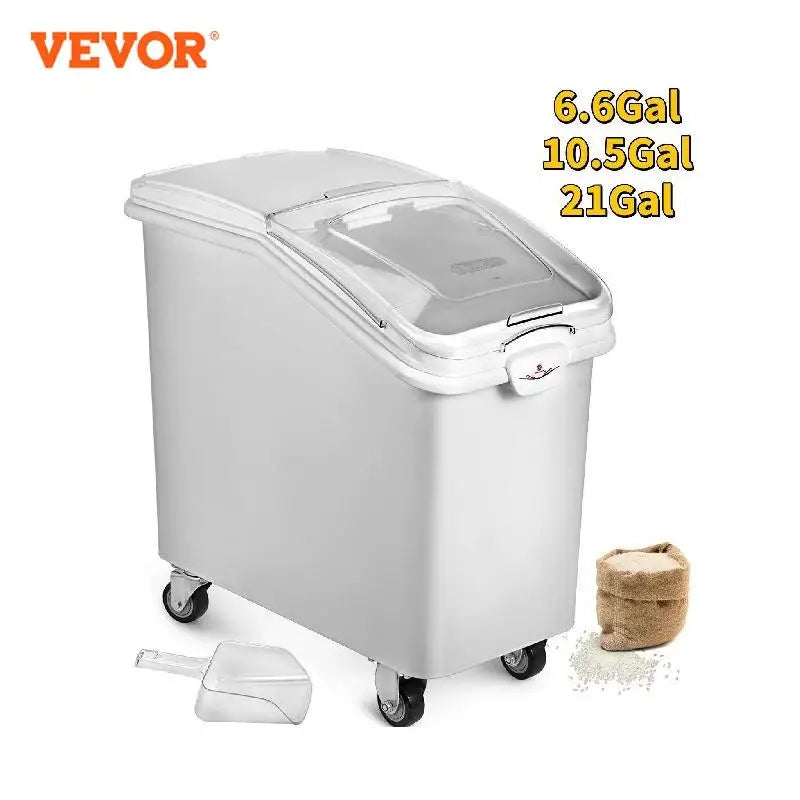 VEVOR 6.6Gal-21Gal Kitchen Container Ingredient Storage Bin W/ Wheel & Scoop for Commercial Home Storing Rice Flour Corn Soybean