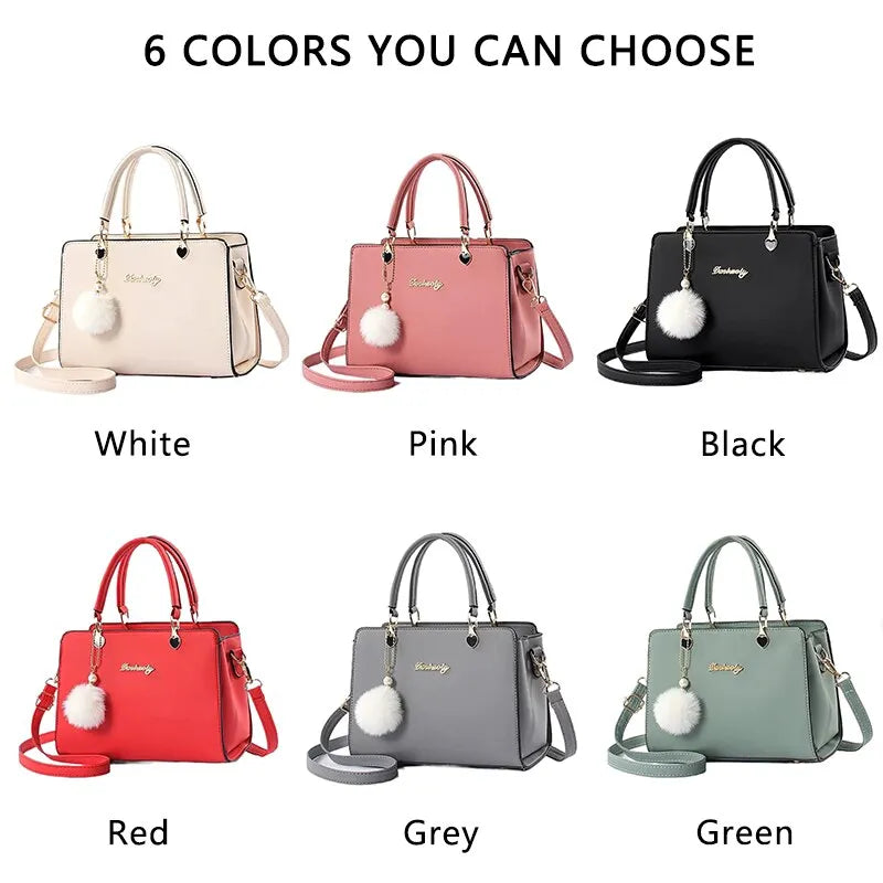Women Plush Ball Decor Handbag Fashion Satchel Bag Stylish Purse and Tote Bag PU Leather Top Handle Shoulder Bags