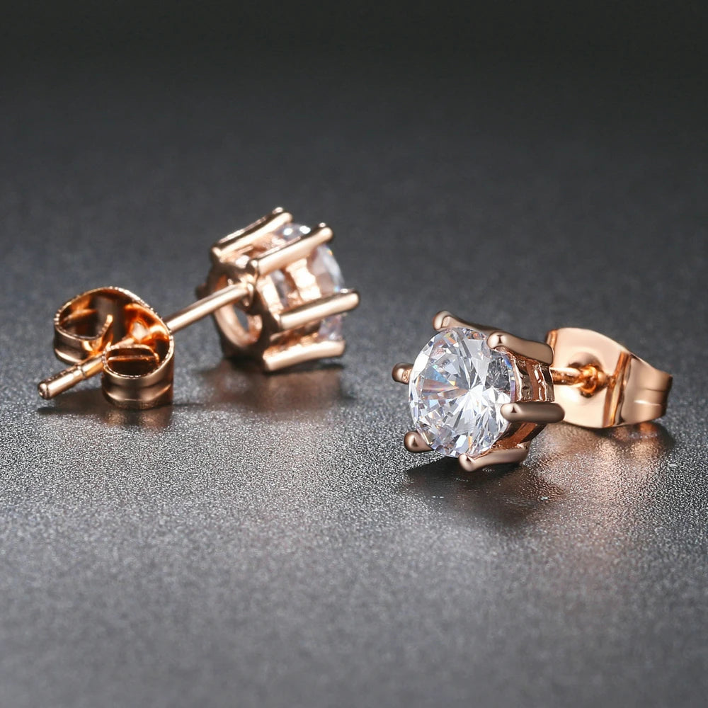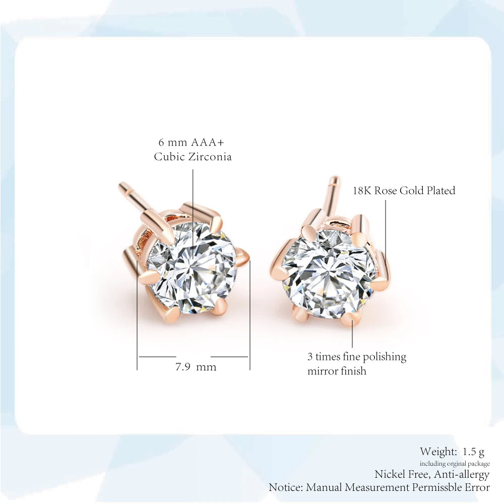 ZHOUYANG Stud Earring For Women Classic Six Claws 5mm 0.5ct Round Cut Cubic Zirconia Rose Gold Color Fashion Jewelry ZYE036
